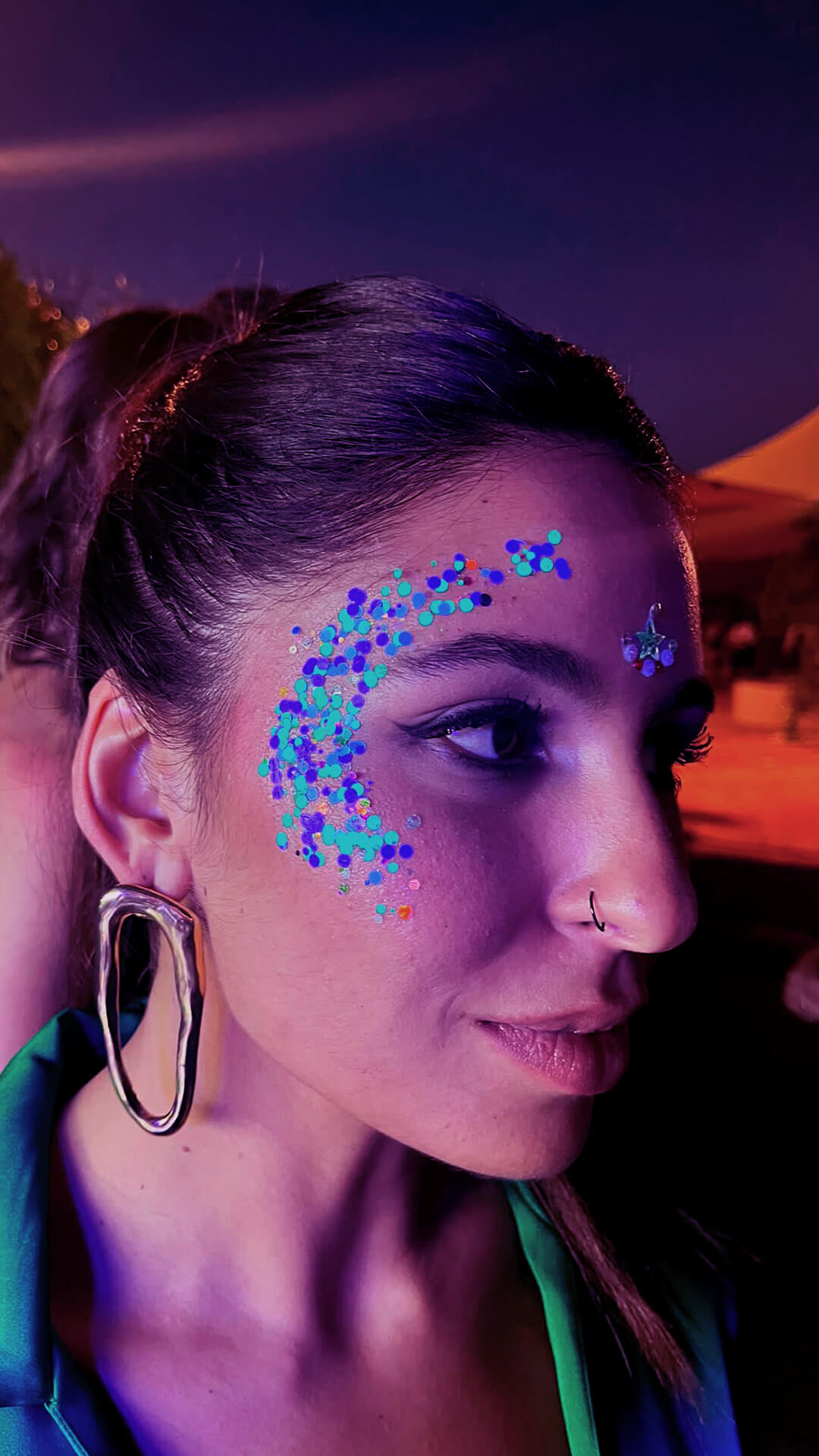¡Da vida a tu evento con nuestro servicio de móvil que deslumbrará y elevará la experiencia a un nivel festivo inigualable! Nuestro equipo de maquilladores y maquilladoras especializados en maquillajes con brillo, gemas brillantes y neón está listo para convertir tu pista de baile en un verdadero festival de colores y destellos.